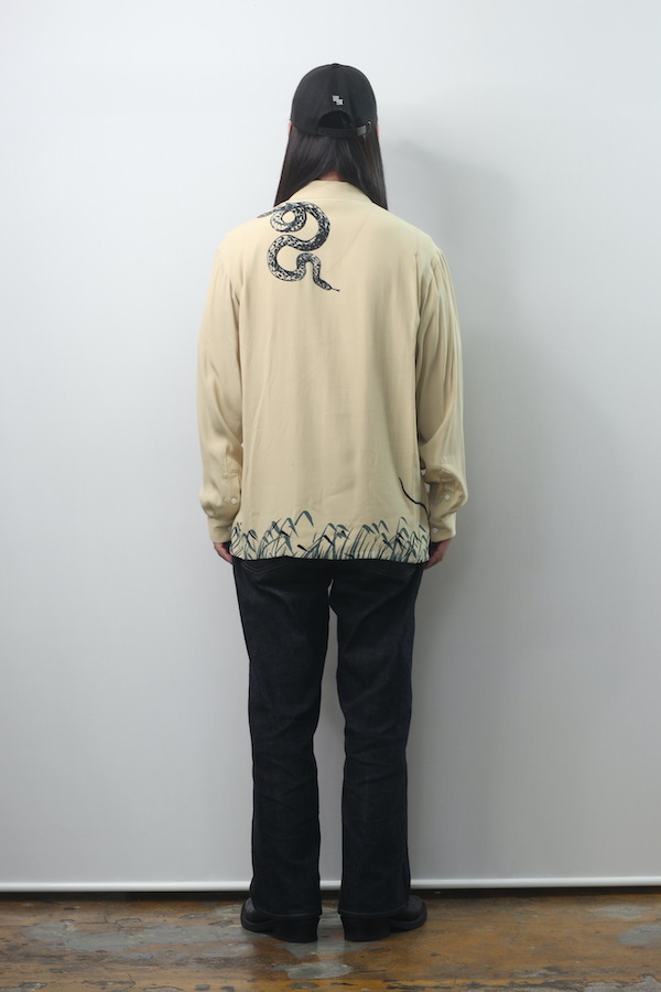 【OLD JOE&CO.】オールドジョー ORIGINAL PRINTED OPEN COLLAR SHIRTS “Hebi” Long-sleeve(BUTTER)