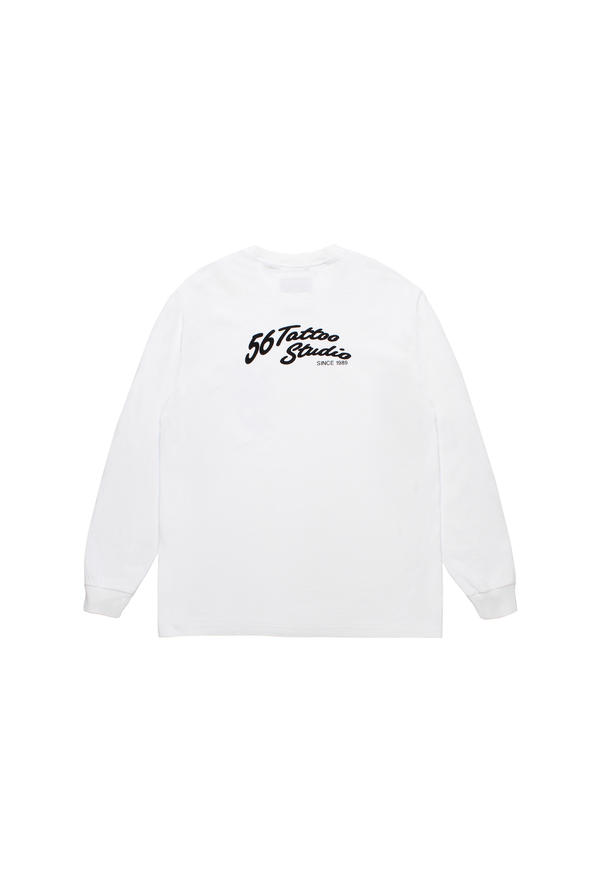 56 TATTOO STUDIO / WASHED HEAVY WEIGHT CREW NECK LONG SLEEVE T-SHIRT(WHITE)