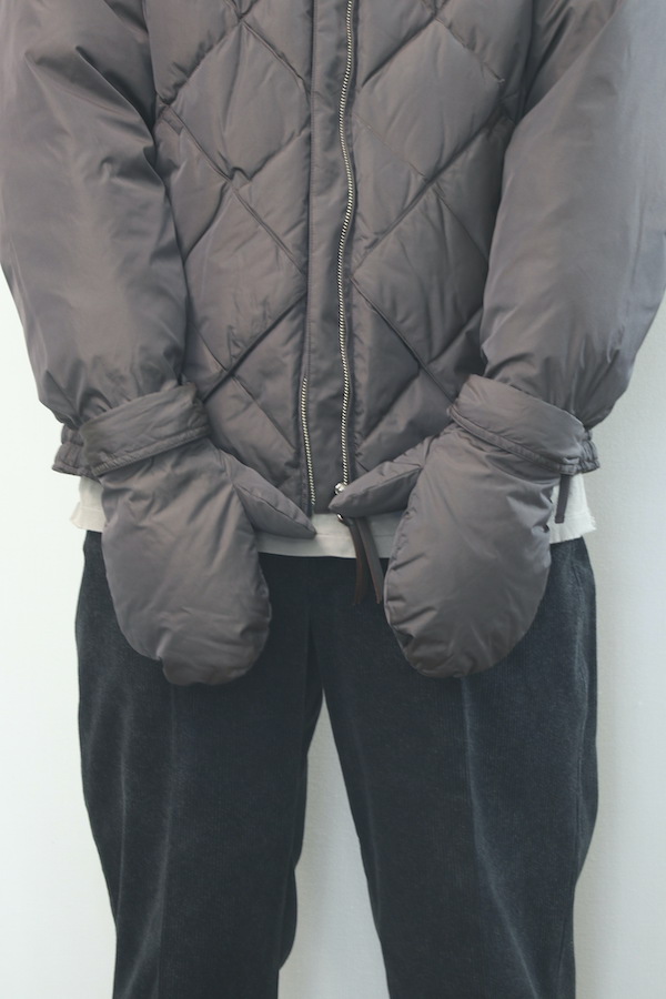 シグネチャーディテールのミトンに、シルクとポリで高密度に織り上げたマテリアルが目を引く。