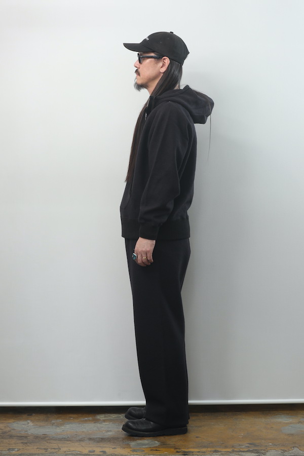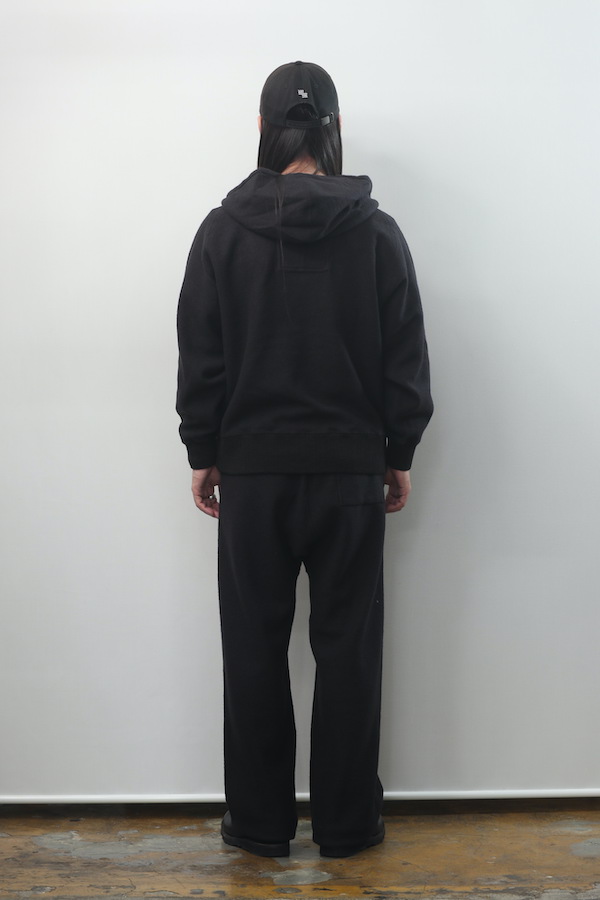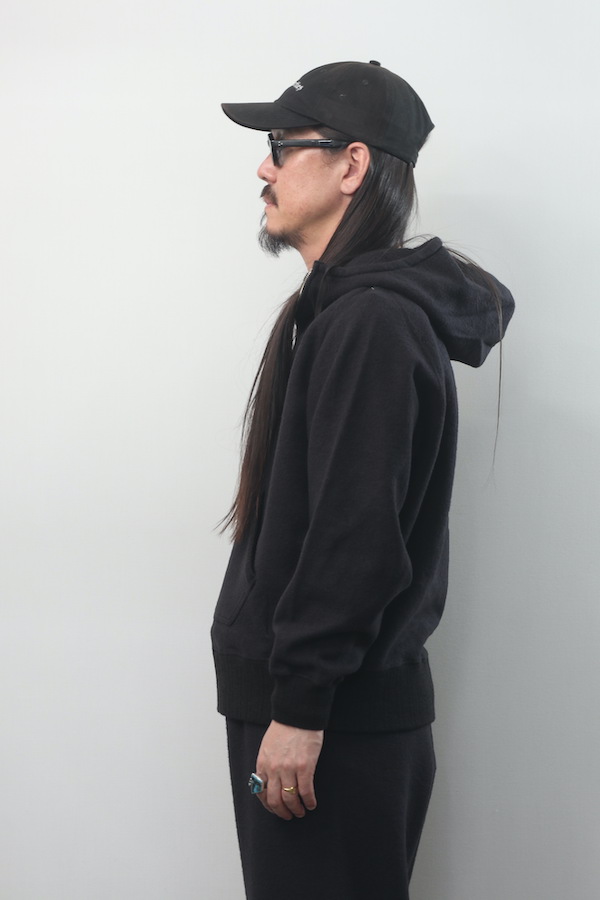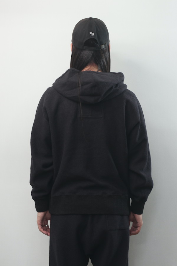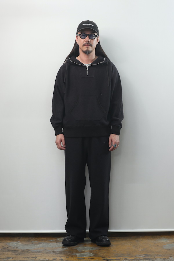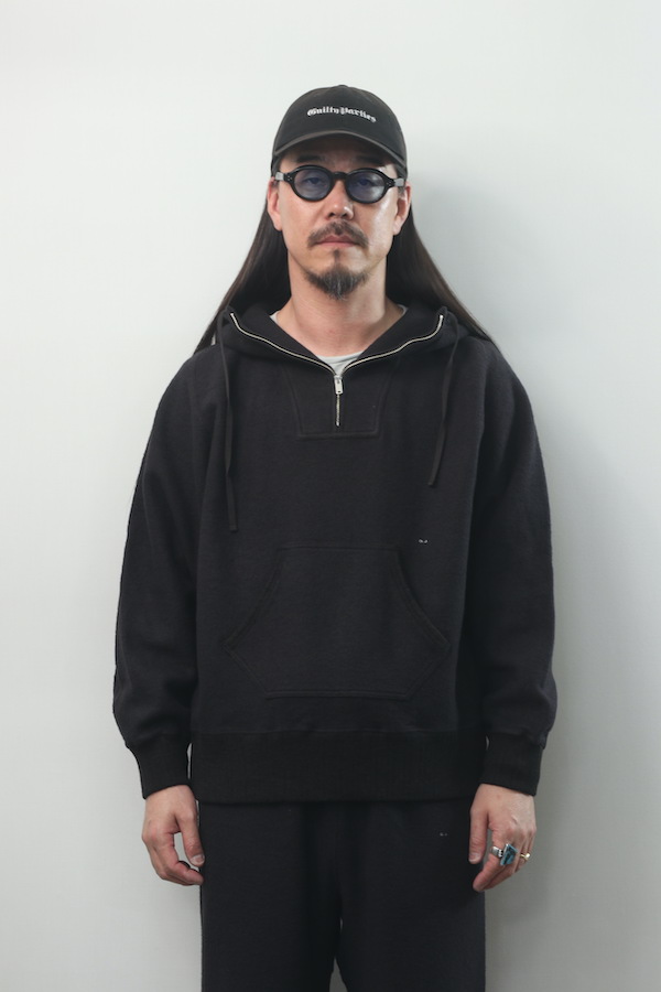 ハーフジップ仕様のスウェットフーディー。