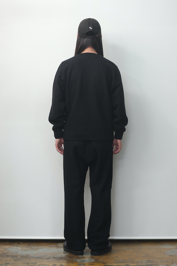ボリュームのあるリングヤーンで編んだふっくらとした天竺に、フライス加工を施して高密度にすることで、しっかりと厚みのある素材に仕上げた。