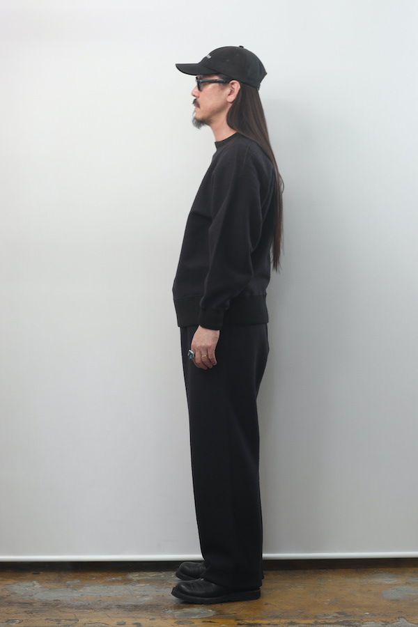 ボリュームのあるリングヤーンで編んだふっくらとした天竺に、フライス加工を施して高密度にすることで、しっかりと厚みのある素材に仕上げた。