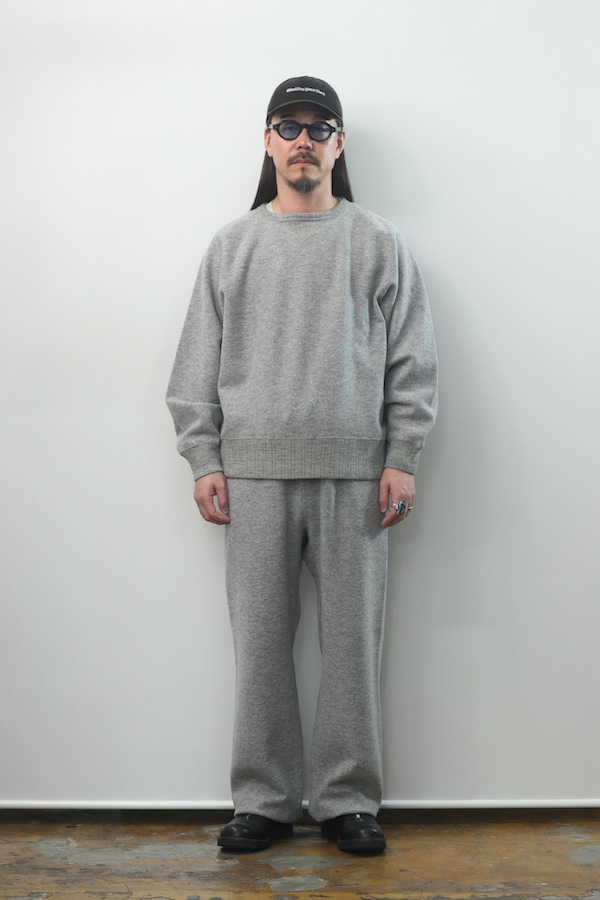 ファインウールとコットンをブレンドして編み立てたマテリアルは、上質な質感と心地よい肌触りが特徴的。
