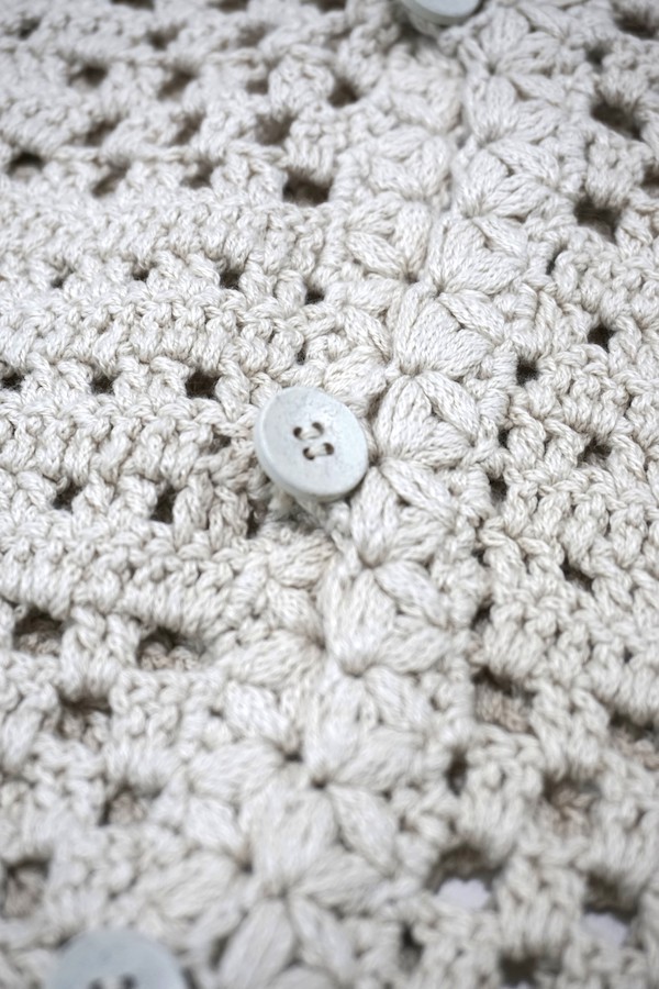 中が空洞になっている糸を使用している為、類似の糸に比べてふっくらとし、全て鈎針(手作業)で編まれ柔らかい印象。
